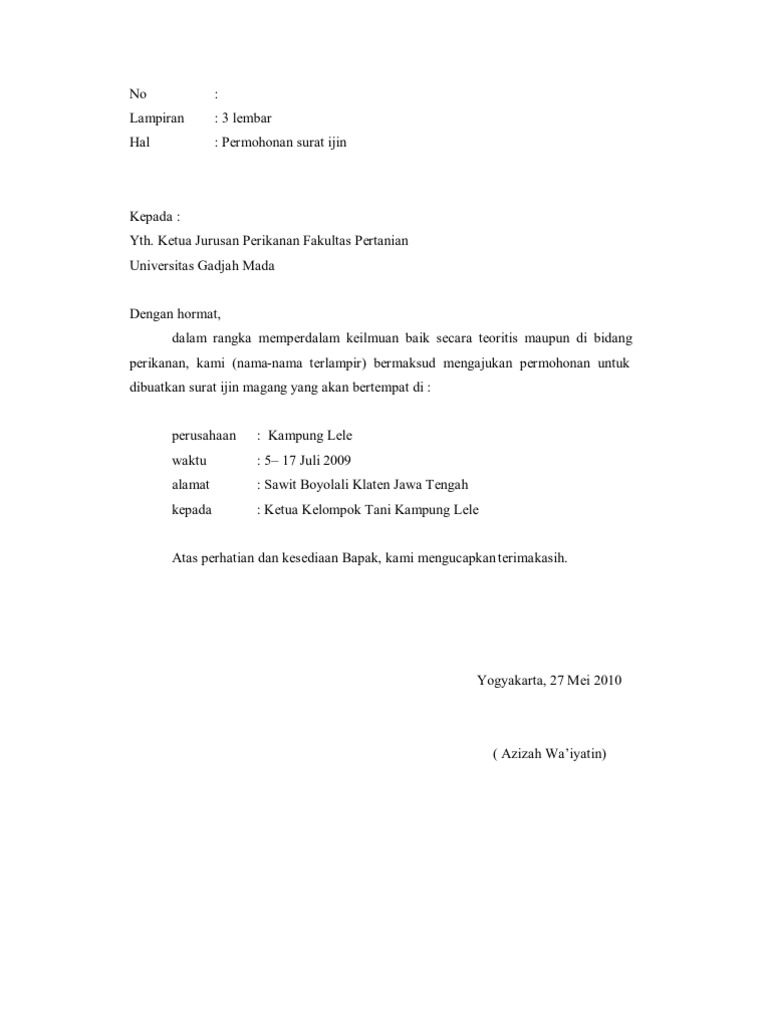 Contoh Surat Permohonan Magang Kelompok Up Wd 1