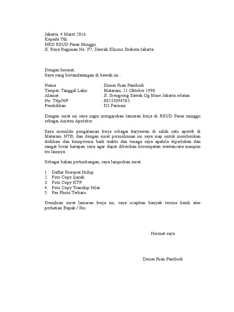 Contoh Surat Lamaran Kerja Asisten Apoteker Di Apotek Kumpulan Contoh Gambar